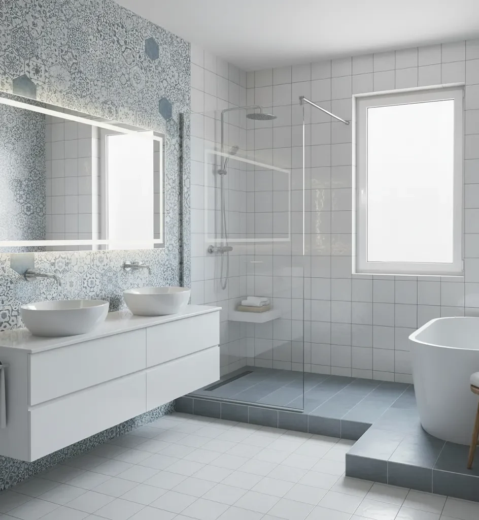 • Select appropriate tile types: Choose durable, slip-resistant tiles that complement the bathroom’s aesthetic while providing safety and long-term performance.